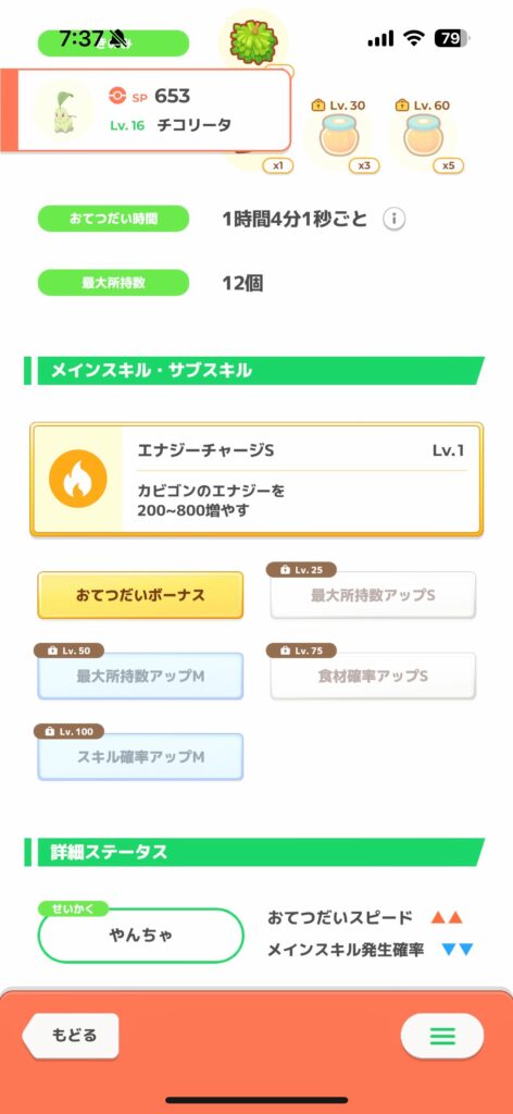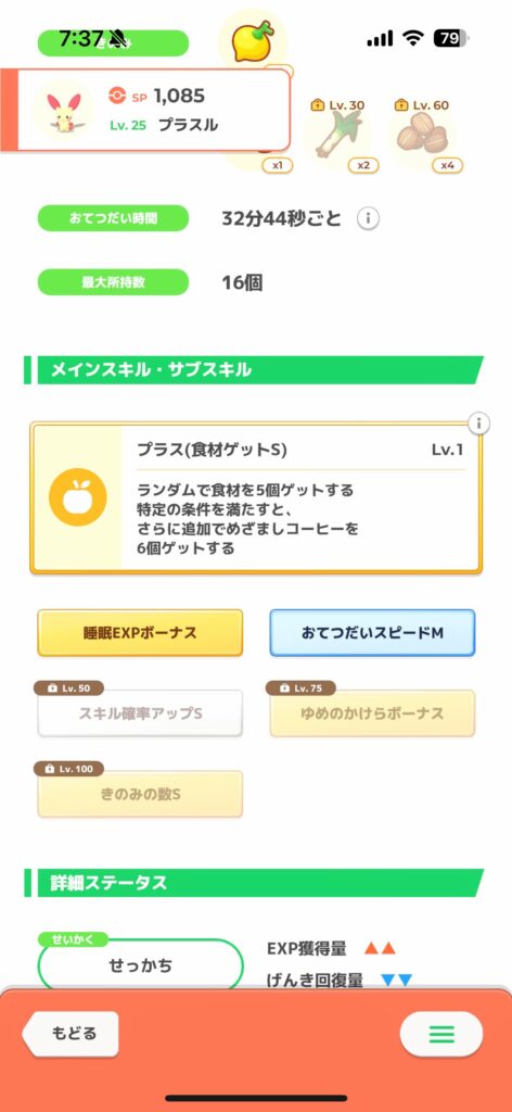・「とくいなもの:スキル」のおてつだいポケモンの