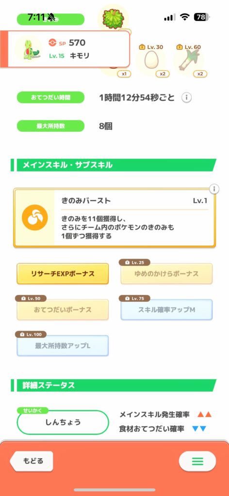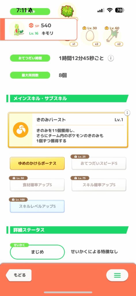 キモリ: きのS+おてぼ+1補正(+スピ性格)