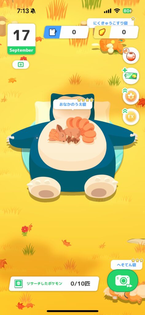 ・睡眠リサーチにて、 特定のポケモンの出現確率UP