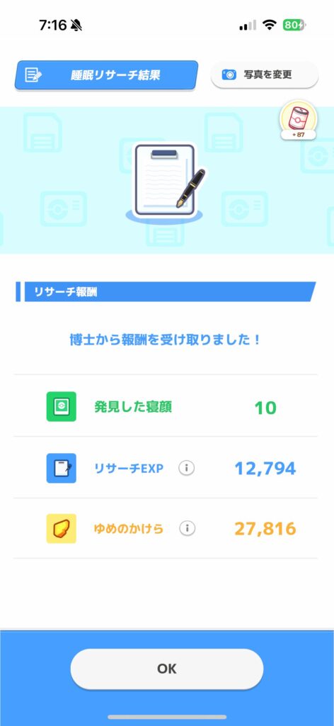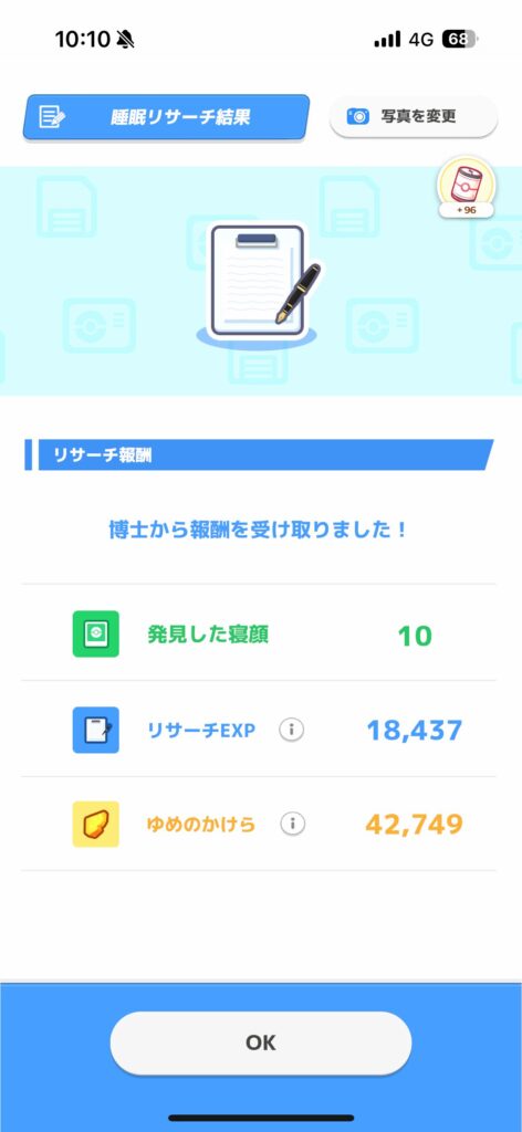 ・睡眠リサーチでイベントアイテムを獲得できる(1日1回のみ)