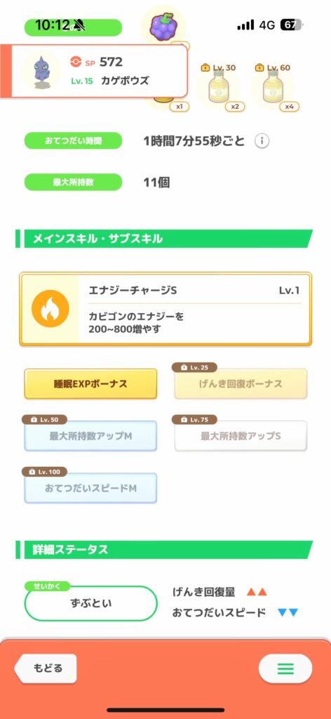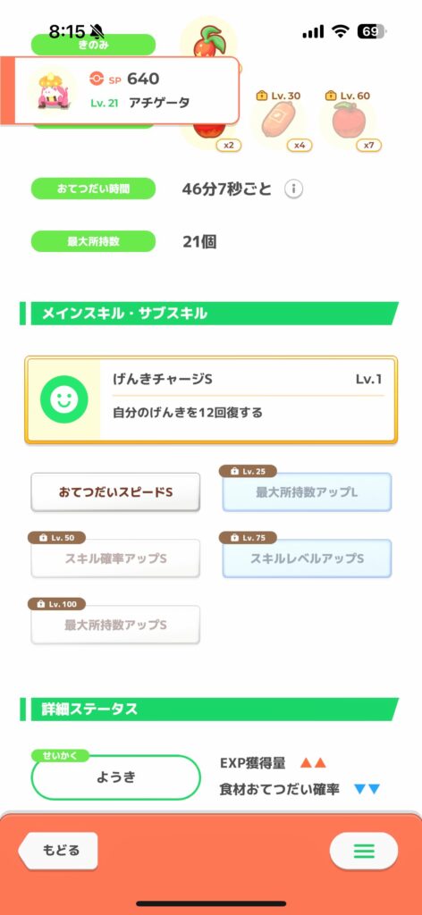 この子の場合は、EXP🔺🔺なのでLv100を目指す場合は全然アリなのが強みですね😗
